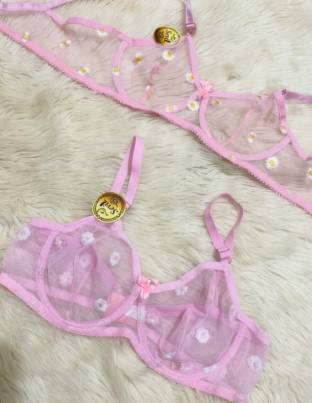 سوتین توری طرح گل بابونه کد 1042